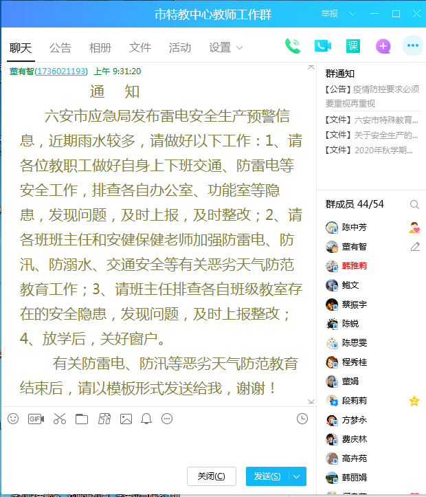 学校进一步健全防汛预警和应急处置制度和预案,落实人员和物资保障,落实汛期校园值班和巡视工作。在强降雨期间严格执行汛期24小时值班制度和领导带班制度,安排足够的安保、后勤等人员坚守岗位。防汛形势严峻,我校将全力做好汛期防灾减灾保障工作,确保师生生命财产安全。(文字:董有智,图片:台冉和部分班主任)