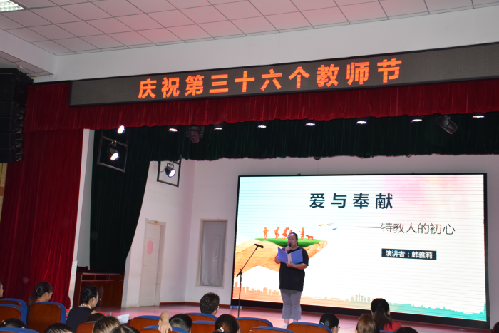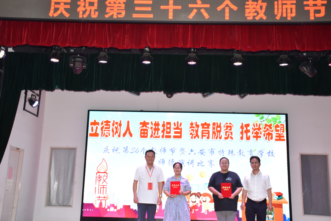 为庆祝第36个教师节,展现我校教师立足特教教学岗位,助力打赢新冠肺炎疫情防控阻击战、教育脱贫攻坚战的精神风貌,9月10日下午,学校举办了一场以“立德树人、奋进担当、教育脱贫、托举希望”为主题的师德演讲比赛。