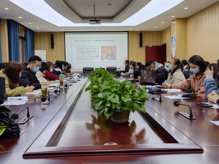 3月21日下午,六安市特殊教育学校党支部在校会议室开展“坚持‘以人民为中心的发展思想’办好六安特殊教育”主题党课学习活动,此次党课由支部书记陈中芳主讲,全体党员及教师参加。
