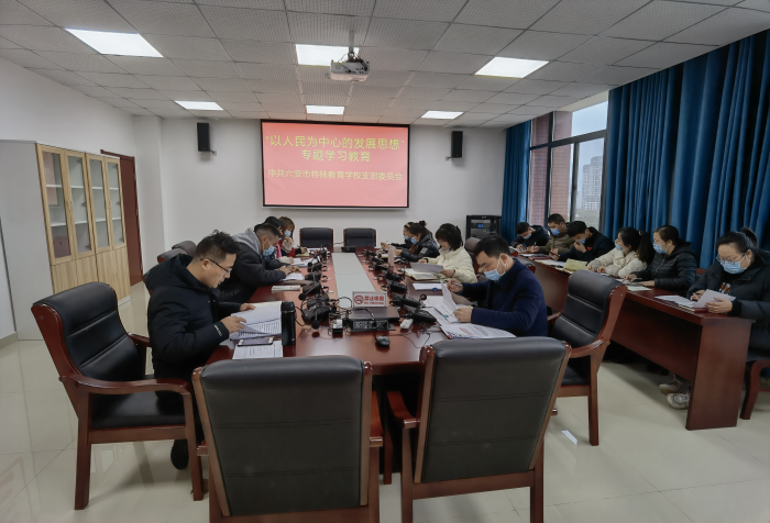 为牢固树立“以人民为中心”的教育发展思想,使党员干部不忘初心、牢记使命,全心全意为人民服务,3月21日下午,六安市特殊教育学校召开“以人民为中心的发展思想”专题学习教育会。会上,陈中芳书记传达学习了习近平总书记在全国“两会”上的重要讲话精神,通报了《关于七起村干部不作为等“六个不”典型案例的通报》《关于从典型案例中检视党性修养政治素质和党建情况的通报》,学习了《皖西日报》刊发的评论员文章《提升本领 跑出战斗力》等文章,参会党员从学校未来发展、结合自身工作实际,就如何提升本领,奋力在特殊教育赶超发展路上跑出战斗力展开积极讨论。