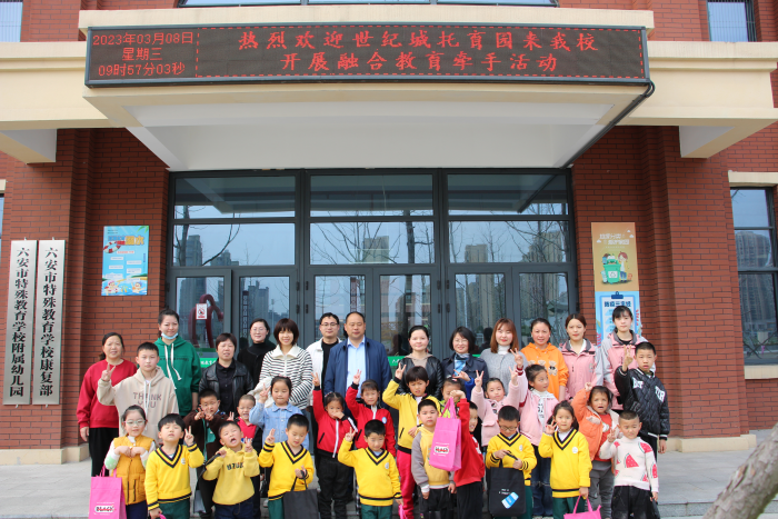为进一步加强普幼儿童与听障儿童的交流,促进融合教育,3月8日,世纪城托育园10名小朋友在裕安区街道、社区相关负责人的带领下,与我校康复部开展"融合教育"牵手活动。