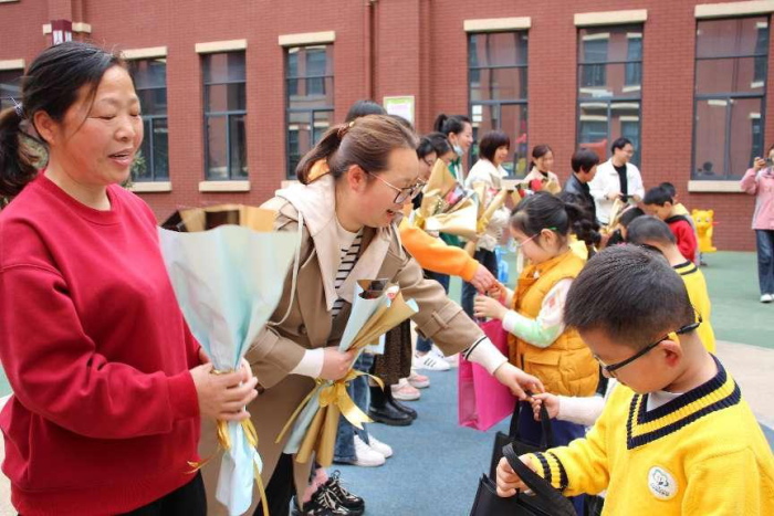 在特校老师的引领下,托育园的孩子们参观了校园,并与听障孩子进行交流互动,在操场上做“你拿我放”互动游戏,孩子们从开始的生疏,到互相加油、互相鼓励,慢慢默契起来,虽然康复部的孩子说话有些吃力,但也努力为小伙伴加油鼓劲,快乐欢笑声响彻在大家身旁,这也是这次融合教育最美的意义。世纪城托育园的孩子们还为康复部的女教师送上了精心准备的“三八”节礼物,整个活动充满浓浓的暖意。
