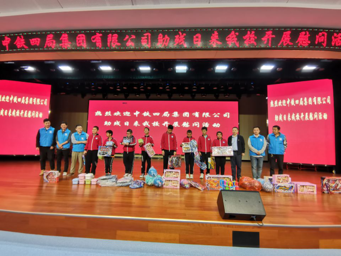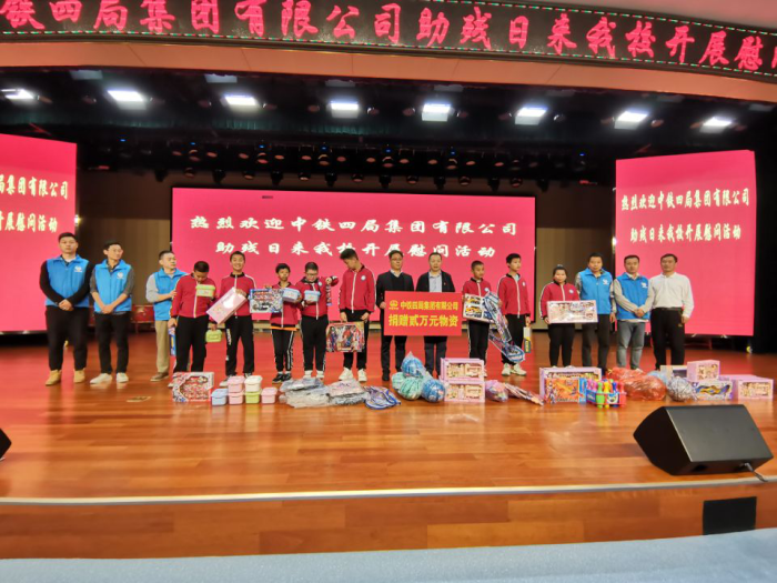 李昕书记及中铁四局六安分公司的部分员工将带来的学习用品和生活用品亲手送到孩子的手中,并勉励孩子们要身残志不残,好好学习,学有一技之长,自强不息,将来能立足于社会,回报社会。