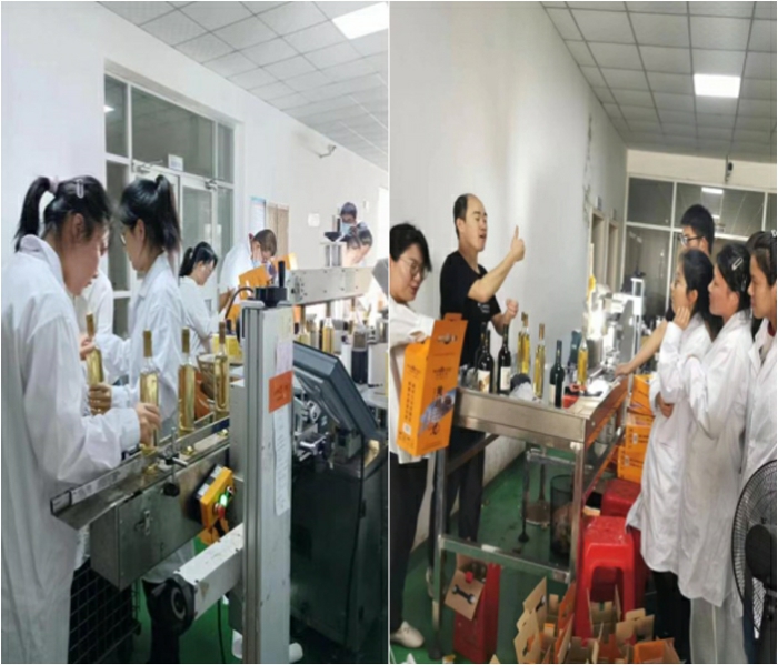 在金土地农业科普示范园,同学们穿上工作服,进入温室大棚,先学习除草方法;紧接着投入到繁杂的除草作业中,虽然杂草众多,面积大,除草过程困难重重,但同学们不怕苦不怕累,积极面对,克服困难,认真完成布置的任务。在米酒生产车间,同学们了解米酒制作过程,体会传统手工技艺的魅力,大家一边学习,一边将做好的米酒包装起来,现场井然有序。