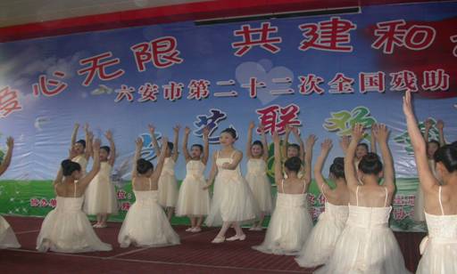 5月20日,在第二十二全国助残日到来之际,特教中心的师生们精心准备了文艺表演以感谢关注残疾人的社会各界爱心人士。这次活动有市残联和市文广新局主办,市特教中心职业技术学院青年志愿者和皖西演艺传媒公司协办。在这个特殊的大家庭里,孩子们虽然身体上有残缺,但是他们却为我们呈现了一场汇集了舞蹈、诗朗诵、健美操、手语等精彩节目的文艺演出,整场演出精彩纷呈,掌声不断。