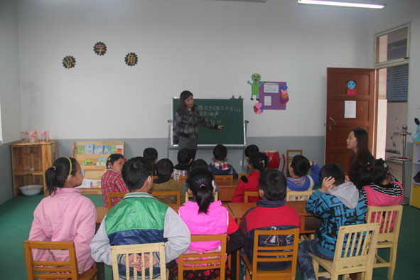 宋修华老师在语训部大班上了关于六个韵母a、o、e、i、v、u的学习。她的课由四个环节组成:首先,教会小朋友六个韵母长短音的发音,让小朋友自己练习发音;然后,教会小朋友六个韵母四声调的发音;其次,宋老师带小朋友做了个互动游戏,让小朋友在游戏过程中学会四声调的发音;最后,在老师和小朋友合唱了一首《爸爸妈妈去上班我去幼儿园》的儿歌中结束了本节内容。
