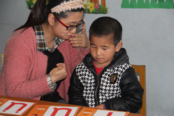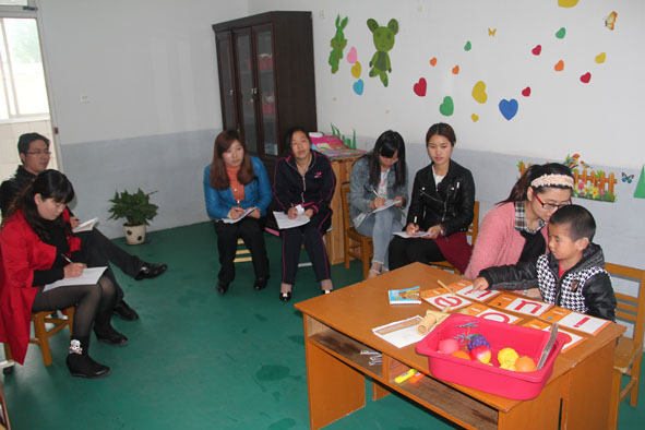 4月19日上午第三节,校领导班子组织语训部教职工在单训室听课,由金宗蕊老师授课。金老师有针对性对聋儿进行单韵母训练,单训时重点分明,针对性强,教态亲切自然,内容安排的详略得当。(文字:吴启梦 图片:方放)