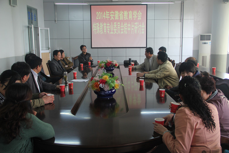 4月20日,安徽省教育学会特殊教育专业委员会皖中片研讨会在六安市特教中心举行。来自皖中片部分学校的校长、副校长及部分教师参加了本次研讨会。此次会议宗旨是为了进一步深化特殊教育教学改革,加强学校之间的交流学习,全面提高特殊教育教学质量,使特殊教育步入良性、健康的发展轨道。