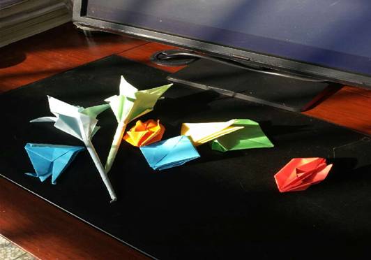 中午1点是我值班的时间,从值班宿舍来到大厅,很多孩子已经午休起床,有的在看书,有的在写作业。我走进大厅坐下来,发现自己的备课本前放着许多纸折的小花、千纸鹤,我问保育员张老师,她说是学生折给我的。在惊讶于学生的心灵手巧之余,我感慨这些特殊孩子的懂事和细心。接下来,又发生了一件小事……