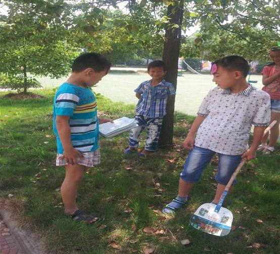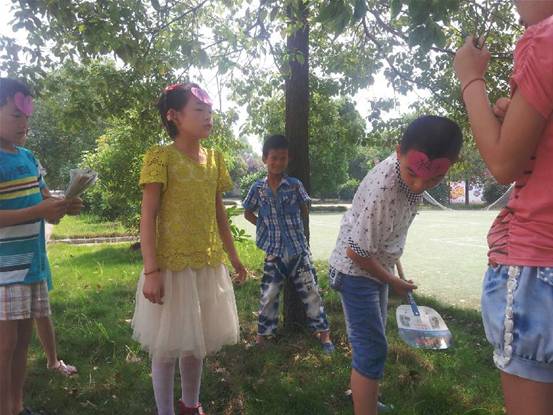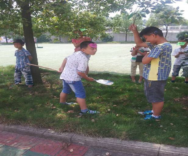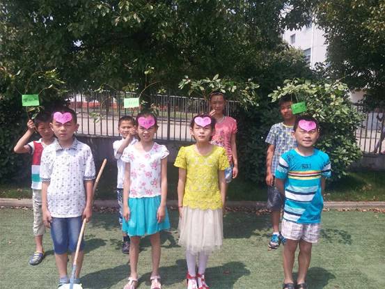 《猴子种果树》也是一个寓言故事,我和孩子们一起做道具,分配好角色,就和孩子们一起到校园的小草坪上去表演课本剧啦!
