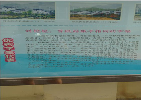 6月6日,我和江宗明校长、方放老师带着毕业班学生到合肥市特殊教育学校参加聋生中考,休息的时间我们欣赏了校园的橱窗风景,偶然间一个熟悉的名字跃入我的眼帘:“刘艳艳”,亲切之感油然而生,再细看:“优秀学生代表!”。