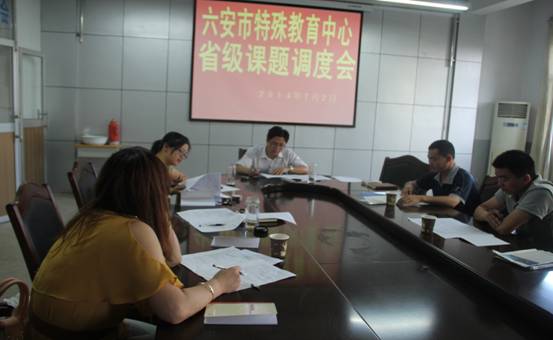 2014年7月2日下午,六安市特殊教育中心《完善特殊教育学校办学模式的研究》省级课题调度会在三楼会议室召开。会议由课题负责人陈中芳主持,课题领导小组成员参加会议。