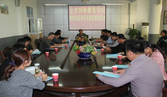此次优质课评选活动市教育局高度重视,市教育局高红卫局长在分管教学王勇副局长和教研室方忻吾主任的陪同下亲临全市特殊教育学校教师优质课评选活动现场,并对评选活动作了重要指导。