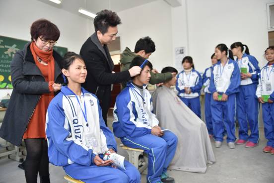 该美容美发公司负责人孙彩霞带领4名发型师,向学生手把手传授美容美发技能,让孩子们在动手操作中体验到职业教育的实用性。