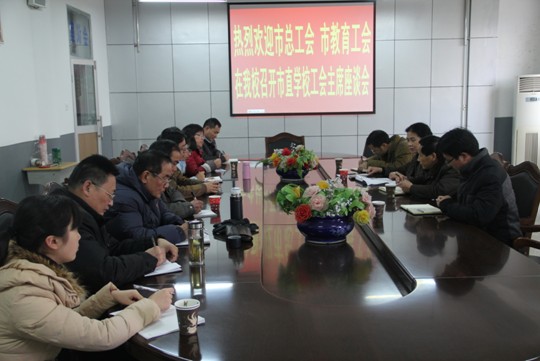 元月14日下午,市总工会、市教育工会在六安市特殊教育中心召开市直学校工会主席2015年工会工作座谈会。