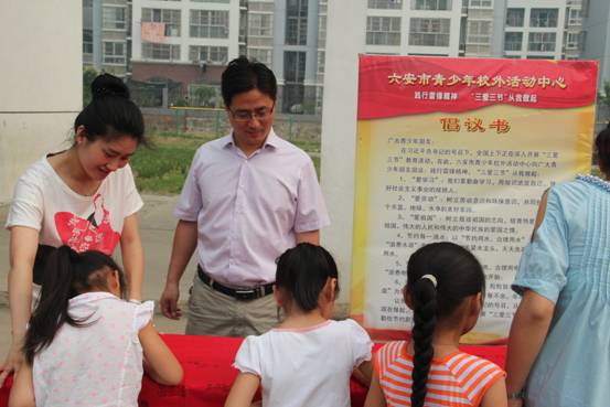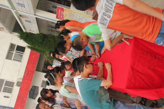 在活动现场,孩子们诵读了“三节三爱”活动倡议书,并在市青少年校外活动中心工作人员的引导下有序的进行百米长卷签字活动,签字活动结束后学生们踊跃观看“三节三爱”教育展板。(文:朱旭丹 图:江宗明)