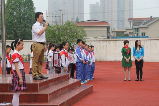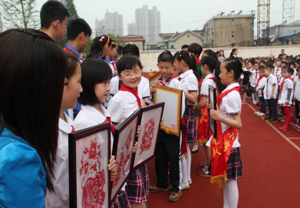 18日上午,六安市特殊教育中心的6名学生代表在陈中芳校长带领下出席了解放路小学的每周升旗仪式,升旗仪式后,市特教中心的学生代表献给上了市特教中心学生精心制作的爱心小礼物---十二幅生肖剪纸装裱画。