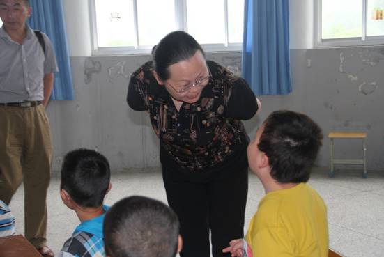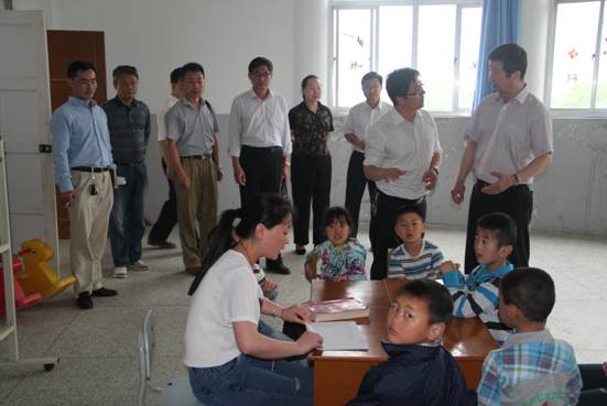 刘主任一行先深入到课堂中,与语言康复班的孩子亲切交谈,看到孩子们经过康复后能清楚地说话,刘主任十分高兴和欣慰;在听障班,刘主任一行耐心询问孩子们的学习成绩,关心孩子们的生活情况。