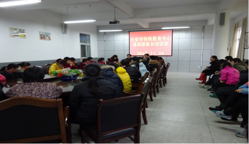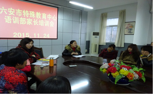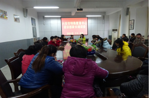 为了更好的加强家校之间的联系,最大限度地发挥家校协作教育的合力,提高孩子的语训效果, 六安市特殊教育中心康复部于2015年11月24号下午召开了六安市特殊教育中心家长集体培训会。