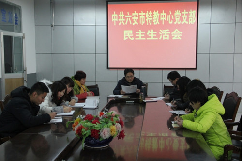 1月12日上午六安市特殊教育中心党支部召开党员干部民主生活会。会议由党支部书记陈中芳书主持。在会上,陈中芳书记首先带大家回顾党支部开展“三会一课”的有关内容:定期召开支部党员大会、支部委员会、党小组会,按时上好党课,并作了强调:“三会一课”制度是党的基层支部长期坚持的重要制度,也是健全党组织生活,加强党员教育的重要制度。随后,陈中芳书记组织全体党员学习了中共中央印发的《中国共产党廉洁自律准则》,并对党员廉洁自律规范和党员领导干部自律规范作了明确的阐释,并要求大家结合工作实际开展批评与自我批评。