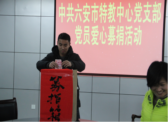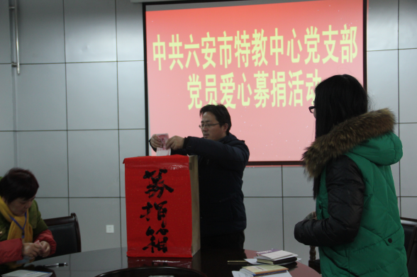 活动分三部分:首先,学校党支部书记、校长陈中芳对募捐活动的议程进行相应的动员与部署,让党员同志们对这次募捐活动有了全面认识,从而提升自身的思想觉悟性。其次,全体党员同志集体学习了《中共六安市特教中心党支部党员爱心募捐活动倡议书》,使得大家深刻感受到作为党员在平时工作、生活、学习中要始终起到模范带头作用,要有踏实的实干精神。最后,全位党员同志纷纷献出了自己的爱心,短短几分钟的时间内共收到捐款2200元。