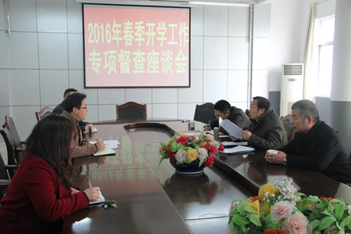 3月9日上午,市教育局督查组由陈宗泉副局长带队,教研室和学籍管理科有关人员陪同,对我校2016年春学期开学重点工作进行专项督查。