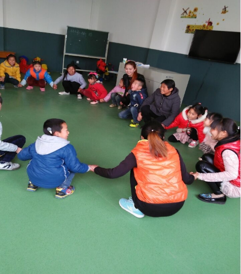 2016年3月25号,混合班的两位老师组织本班的孩子和家长上了一节精彩的亲子活动课。活动的第一个游戏是《拉个圆圈走走》,让孩子在游戏中边说边听,锻炼孩子们的听说能力。活动的第二个游戏是《找朋友》,老师引导孩子和家长一起做拍手、敬礼、握手的动作,锻炼孩子们的说唱能力。这节亲子课,孩子们兴趣浓,家长积极性高,收到了良好的教学效果。(文字:张会传 图片:程秀云)