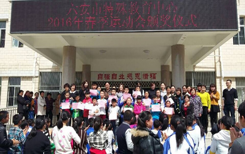 4月8日,在这个春意盎然、鲜花盛开的季节里,六安市特殊教育中心的全体学生们迎来了他们期盼已久的2016年春季趣味运动会。