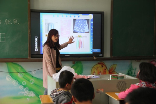 张老师根据本班智障学生的身心发展特点,从实际生活出发,结合实物和图片,使学生充分认识了生活中的日用品毛巾和肥皂及其用途,又通过视频使学生明白要做一个爱干净,讲卫生的好孩子。整堂语文教学贴近生活,促进智障生的生活适应能力的提高,从而真正实现了培智教育的最终目标。(文字:吴启惠 图片:董有智)