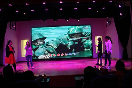 第一个节目以学生的手语诗和老师的歌曲《走在乡间的小路上》拉开了庆“五一”活动的帷幕,掀起了节日欢歌。老师们演唱《卓玛》、《青藏高原》等歌曲,台上台下呼应合唱,气氛热烈;语文组老师更是自己改编创作了双簧《以校为家》,展现了特教老师们的日常工作不言苦累、快乐从教的状态,真是创作贴切、表演精彩!台下师生观众乐得合不拢嘴。压轴节目是四位老师带给大家的合唱《阳光总在风雨后》将整个会场气氛推向高潮,在大家热烈的掌声中本次活动落下帷幕。