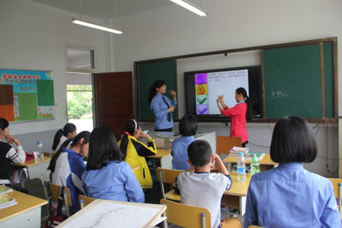 裕安区人民检察院的青年志愿者们在教室和老师学习手语,和孩子们运用手语进行零距离的交流互动。