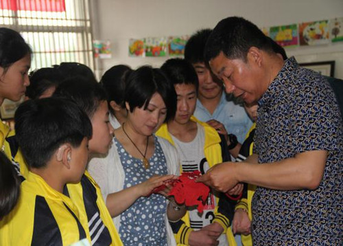 随后廖主委等一行人逐一参观了市特殊教育中心培智班、康复部、口语班,并与孩子们亲切交流,不时询问孩子们的康复效果和学习情况。当一行人观看了我校学生“六一”美术作品及手工艺作品展时,对孩子们创作的书画作品赞不绝口。安徽省民间艺术大师张玉柱饶有兴致地在现场向孩子们展示了手撕剪纸艺术作品,激发了孩子们浓厚的学习兴趣,都有向张玉柱大师学习的愿望,张玉柱大师也表示将合适的时间来学校向孩子们传授手撕剪纸艺术作品的技艺。