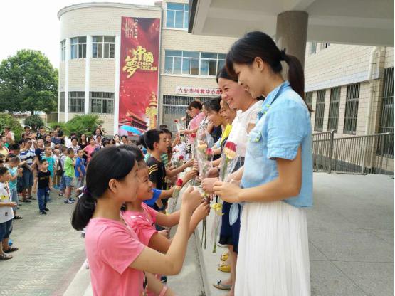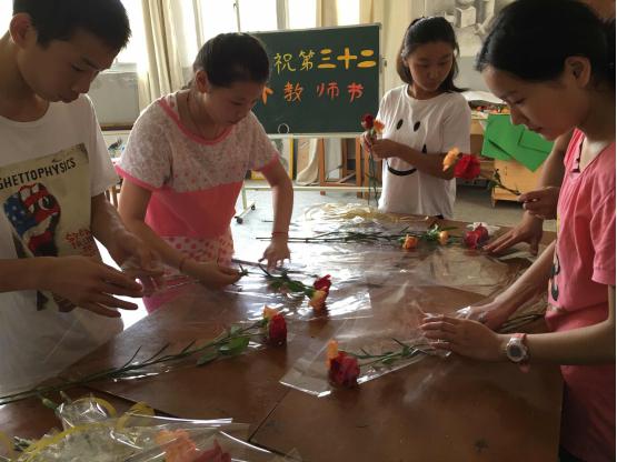 学生代表怀揣着感恩的心,向老师们献上了他们亲手包装的鲜花,表达了对老师的尊敬、爱戴和感谢。甜甜的笑脸,师生拥抱的场景,令人动容。