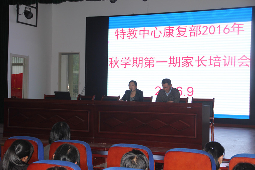 为了更好地形成家校教育康复与训练的合力,提高残疾儿童康复教育的效果,9月29日下午,市特殊教育中心召开了2016年秋学期家长培训会,学校的领导,教师及康复学生家长参加了此次培训。