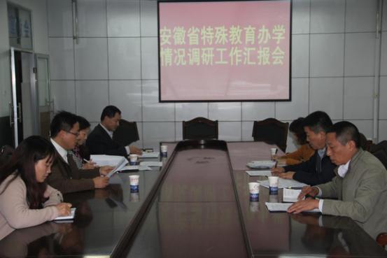 2016年10月24日下午,省教育厅特殊教育调研组刘传德、方达成一行,在市教育局基教科胡晓林等有关同志的陪同下,莅临六安市特殊教育中心开展调研活动。