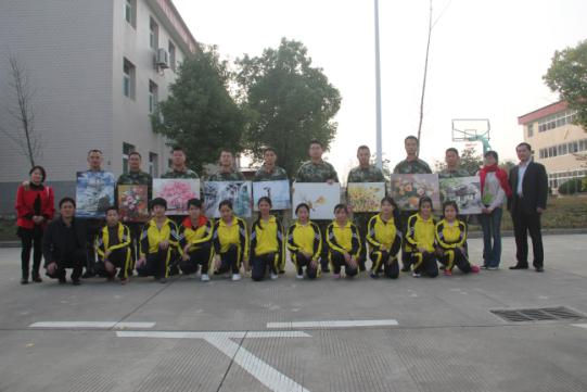 学校的残疾学生还有部分教师在陈中芳校长带领下,直接来到省武警某部后勤基地驾驶训练中队,特教孩子们用特殊的方式向武警战士表达了深深的爱戴之情,纷纷拿出了自己亲手制作的手工艺品及盆景花卉献给了可爱可亲的战士们。