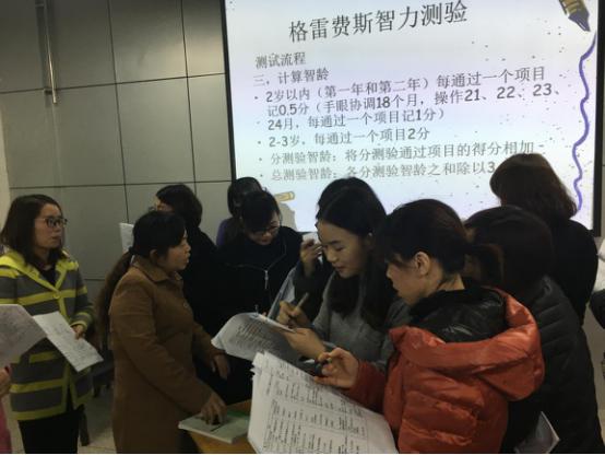 培训会由张欢老师主讲,培训内容分“格雷费斯智力测验”、“希-内智力测验”、CAP听觉行为分级、SIR言语可懂度分级四方面。会上,张老师首先用理论讲解和实际操作相结合的方式对“格雷费斯智力测验”的操作流程进行详细培训,全体教师积极参与,学习气氛活跃浓厚。随后,张老师又对“希-内智力测验”的理论知识以及涉及到人工耳蜗康复的CAP听觉行为分级、SIR言语可懂度分级进行了简明扼要的解读。