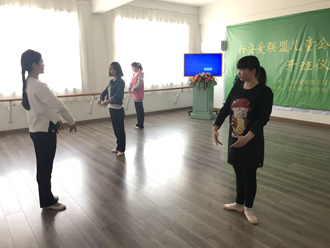 仪式结束后,梦工场的舞蹈老师还对到达现场的助学班老师们进行现场教授,主要教授内容有如何规范上下课,课上怎样保证学生们的安全,以及一些教学技巧等等。