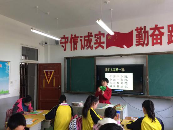 余老师公开课的课题是《扇子》,整堂课的教学充分考虑到了学生的学习能力以及身心发展规律。在课程开始的时候,利用猜谜语活动调动了学生参与教学活动的积极性;接着又围绕着扇子的历史、文化、用途进行讲解,与学生一起探讨中国所特有的扇子文化;之后开始本节课的重点内容:制作扇子,余老师充分发挥学生的动手能力,在强调扇子制作的要点后,让学生自己独立尝试制作一把扇子,学生们也争先恐后的拿起材料进行制止。在课程的最后,学生们踊跃的拿出自己制作的扇子,互相欣赏、评比,余老师对学生的表现进行了表扬和鼓励。