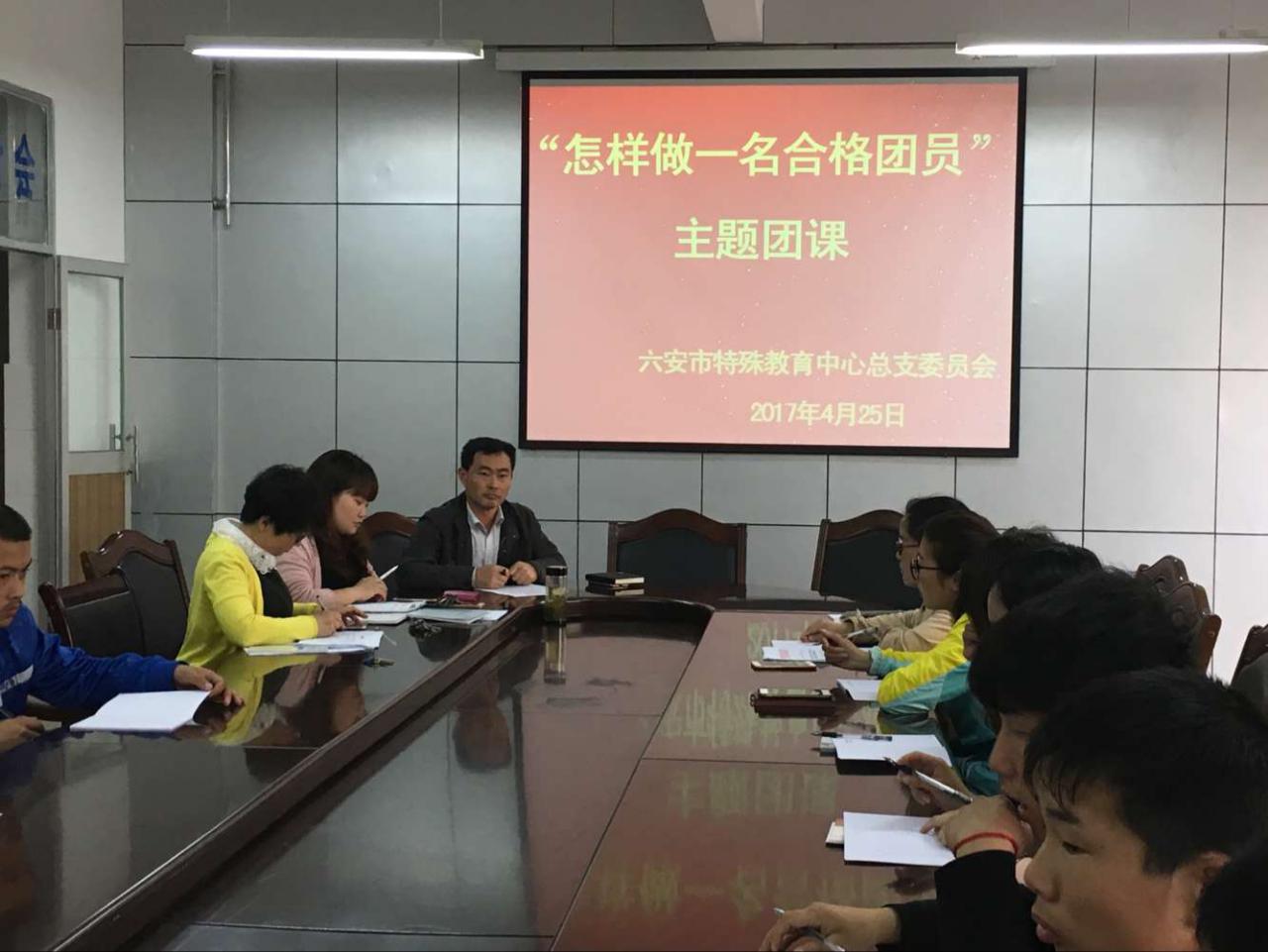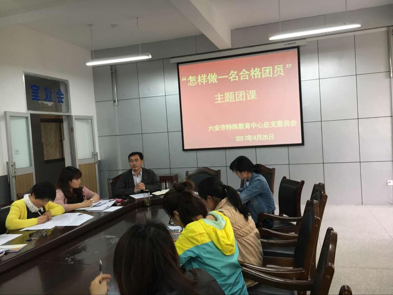 为深入学习习近平总书记系列重要讲话精神,贯彻落实团中央、团省委、团市委统一部署,2017年4月25日下午,六安市特殊教育中心团总支组织全体团员在三楼会议室开展“怎样做一名合格团员”主题团课活动。