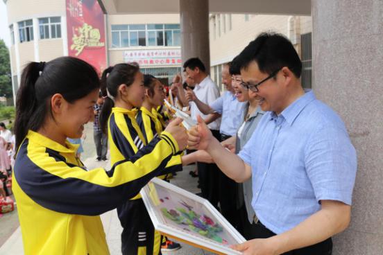 随后市领导一行观看了我校学生大课间活动:教学楼前广场的乒乓球、羽毛球和跳绳训练;大厅里的书法绘画及手工制作;适合智障学生教育的“图形操作”练习;语训康复部孩子们的课间操以及律动课堂。在体育训练室,市委领导还亲切慰问了即将代表我市参加全省第十届残运会的飞镖及象棋两个项目的5名运动员,现场观看运动员的训练情况,向他们表达了殷切的期望和祝愿,并为每人送上400元的慰问金。通过这些观看,市领导一行对我校学生平时的学习情况有了更深的了解,对我校的教育成果展示,感到十分满意。捐赠仪式上,各位市领导向学生发放了由市妇联捐赠的米粉礼包和10000元爱心款;孩子们向各位领导献上自己亲手制作的粘土画,以此表达他们的谢意和感恩之情。