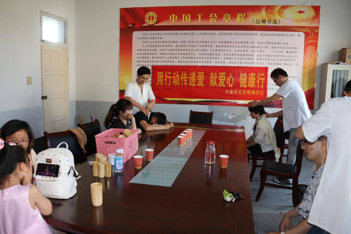 5月21日为第27次全国助残日,“推进残疾预防,健康成就小康”为本次助残日主题。六安市天安推拿中心一行六位推拿技师来到六安市特殊教育中心为辛勤工作的特教教师义务进行推拿保健服务。