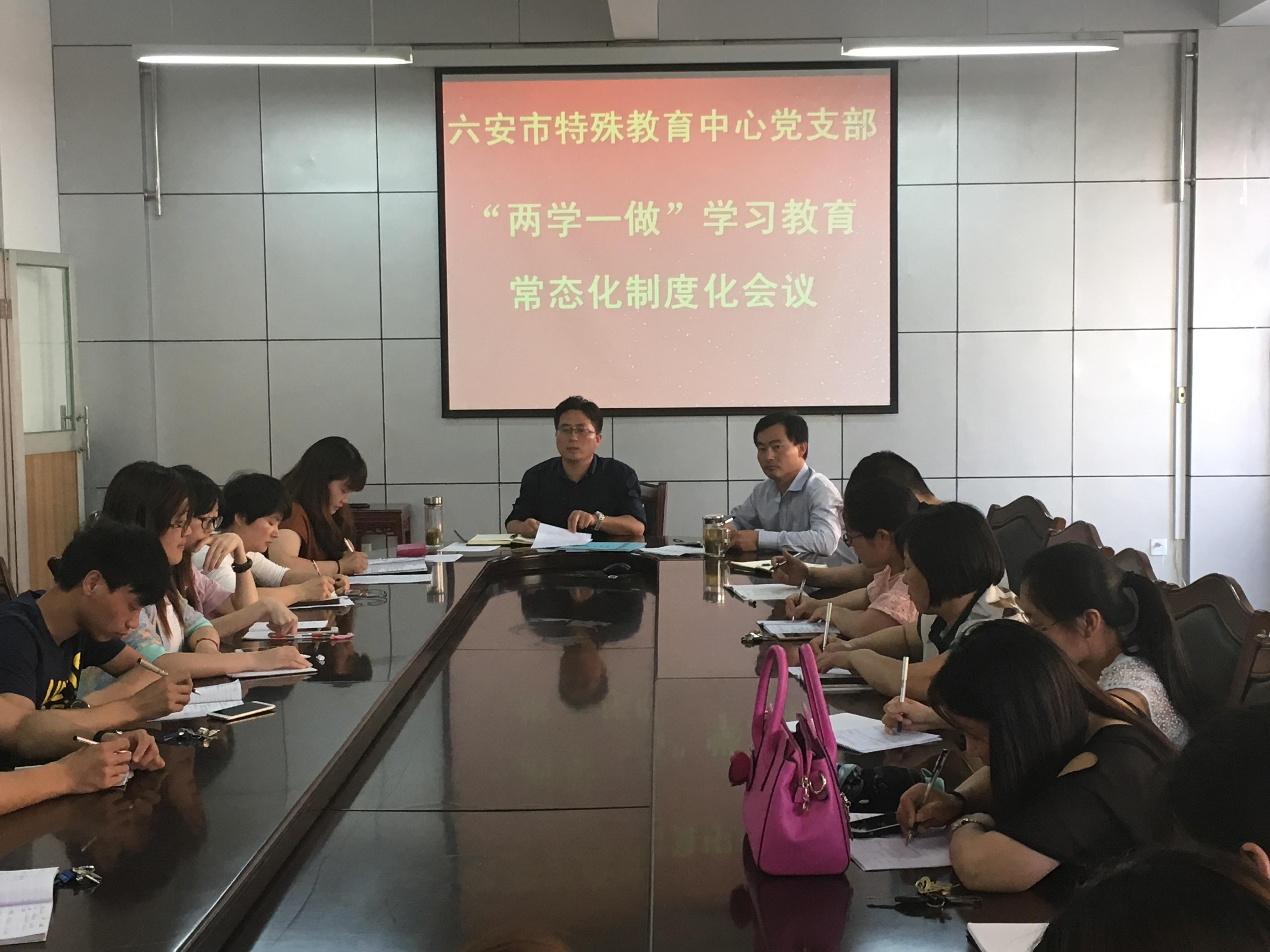 5月26日,六安市特殊教育中心党支部召开了推进“两学一做”学习教育常态化制度化工作会议。