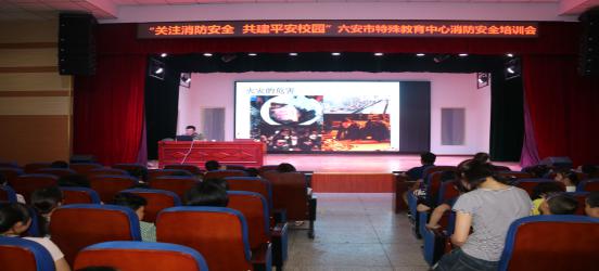 为进一步贯彻落实《关于开展“消防教育进校园”主题活动的通知》(六教秘[2017]17号)文件精神,秉承“预防为主,防消结合”的工作方针,进一步增强教职工及学生的消防安全意识,巩固消防安全常识,提高消防技能,更好地保障学校消防安全,6月21上午六安市特殊教育中心开展了“关注消防安全 共建平安校园”消防安全培训会,邀请金安区消防大队俞主任为全体师生进行消防安全培训。