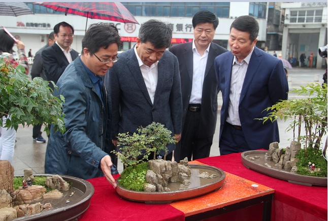 2016年助残日省委常委、市委书记孙云飞在皋城广场观看残疾学生盆景展览