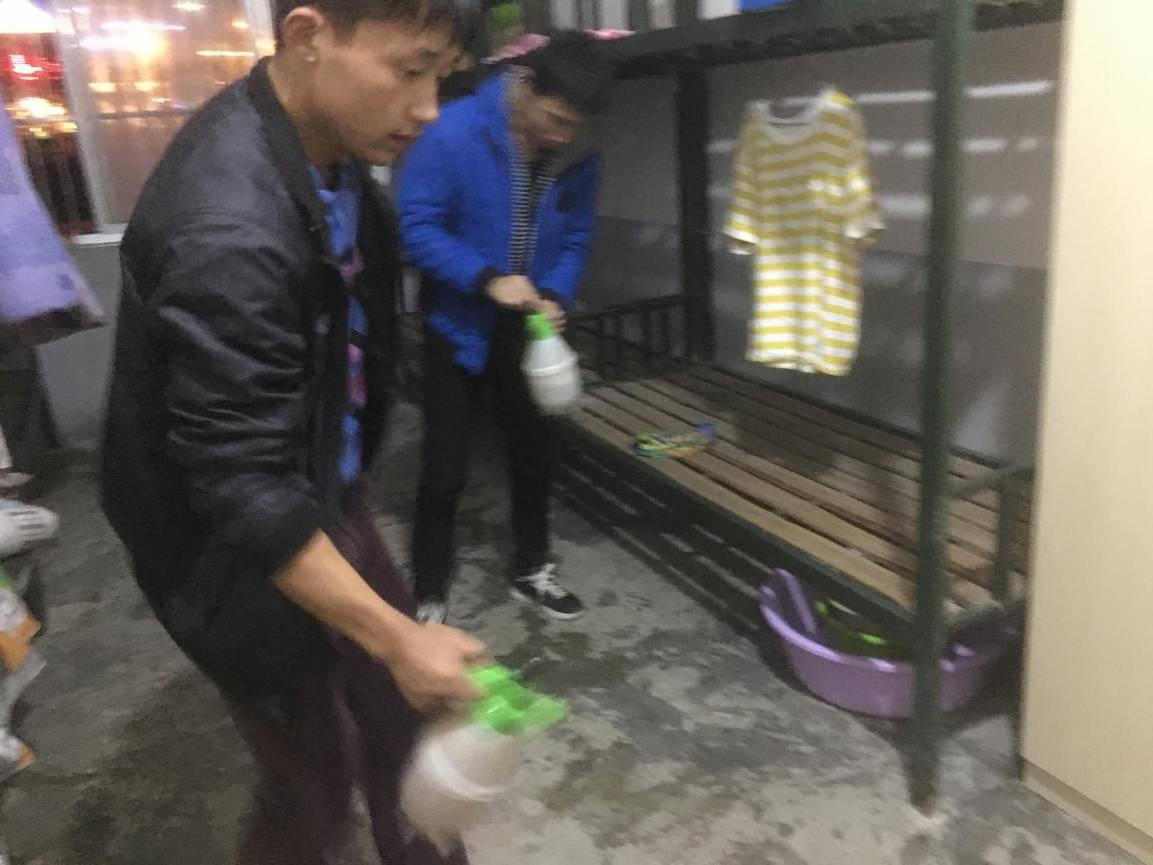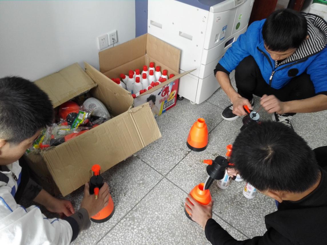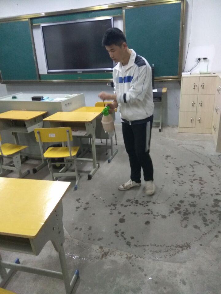 11月7日早晨,学校安排人员购买84消毒液27瓶,消毒喷雾器10个,并安排人员及时对教学楼楼道、教室、办公室、卫生间和生活楼进行全方位彻底消毒杀菌处理。上午第一节课,在陈中芳校长的带领下,学校安全工作小组对学