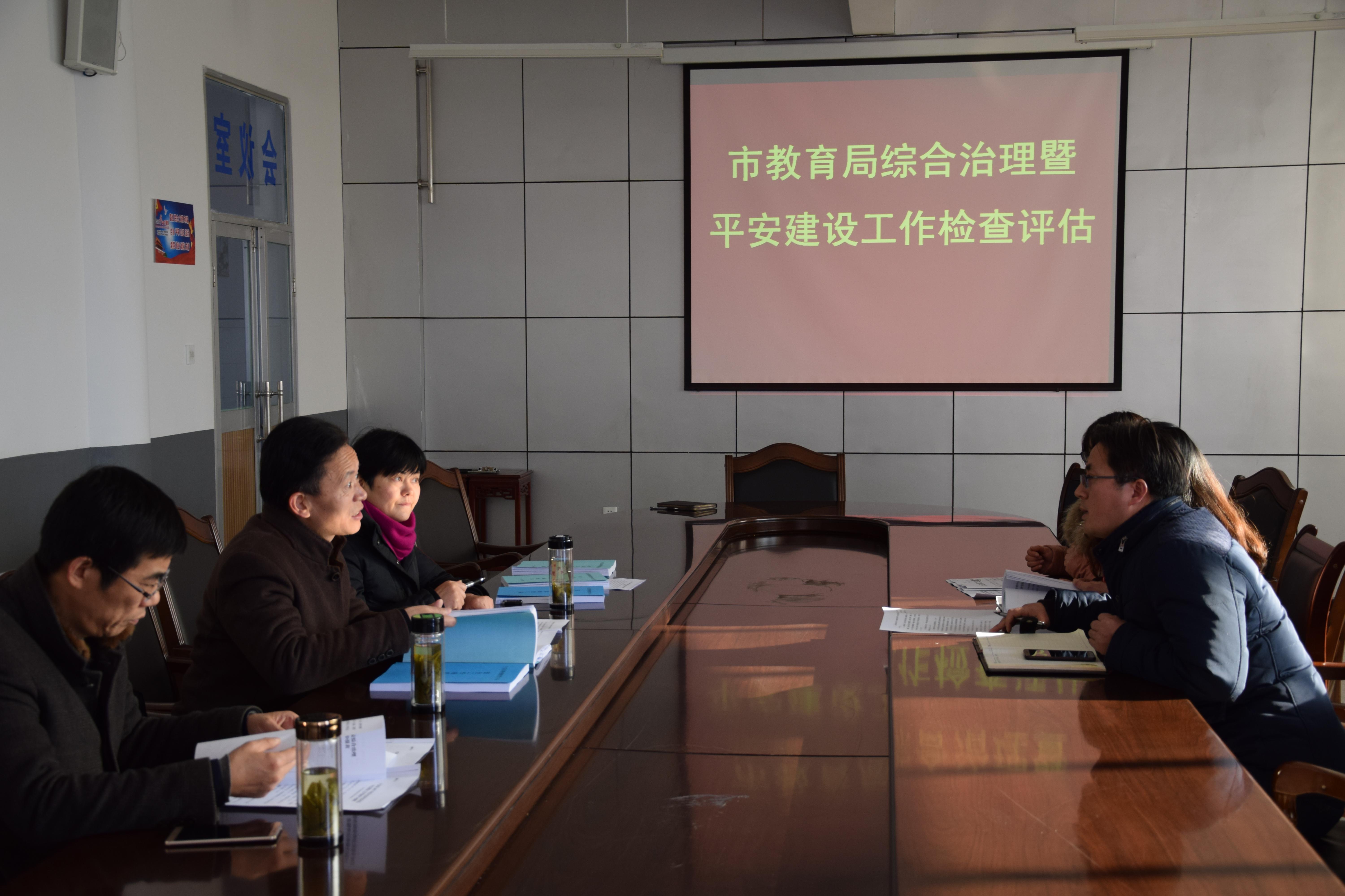 1月9日上午,市教育局综治及平安建设工作检查考评组来我校检查考评社会治安管理及平安建设工作。考评组魏重远主任、高松主任和王主任一行三人实地查看、翻阅相关资料,按照考核评分细则逐项对我校综治及平安建设工作进行考评。