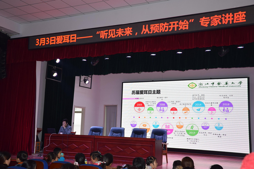 同时为了更全面普及与宣传健康用耳的科学知识,市特殊教育中心还特邀了浙江中医药大学听觉生理学,临床听力学专家学者,主任听力师曹涛向全体师生进行专题讲座。