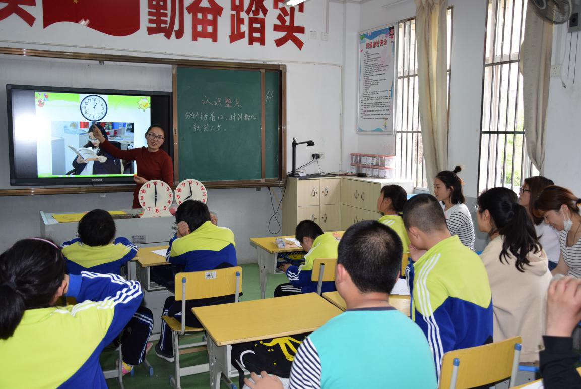 吴老师教态大方自然,教学过程中师生互动强,教学结构完整,紧密结合了本班学生的实际情况,以学生为主体,实施生活化的教学模式。学生们接受效果较好,大部分的学生可以正确认识整点时间,并可以动手在钟面上正确的拨出指针,教学反馈良好。(文字:鲍文 图片:方放)