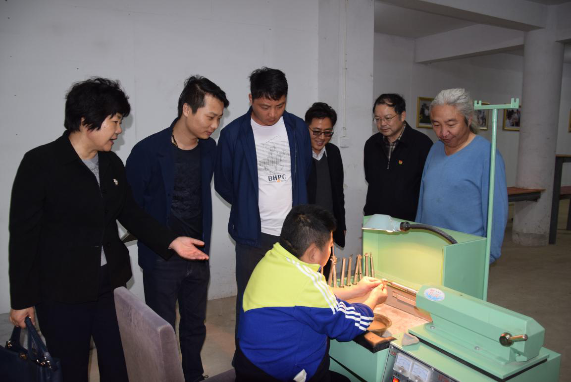 黄应松秘书长一行在陈中芳校长的陪同下,分别到水旱盆景制作、书画装裱、玉石雕刻三个职业教育班进行调研,充分肯定学校积极引进爱心企业和人士,大力发展残疾人职业教育这一办学模式,使学生们真正学到有用的专业技能,为今后就业打下良好的基础。袁琴理事长也指出,学校当前为残疾学生开办的职业教育技能培训,很有实效;在此基础上,与六安吴氏艺术雕刻有限公司的成功对接,是多举措拓宽残疾人职业教育渠道的重要一步,希望双方精诚合作、优势互补、互惠互利、共谋发展,为推进残疾人的职业教育事业做出更大努力。